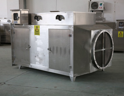 含油煙顆粒物的廢氣吸入高低壓板式末端廢氣處理設(shè)備后,其中部分較大的有霧滴、油污顆粒在均流板上由于機械碰撞、阻留而被捕集。